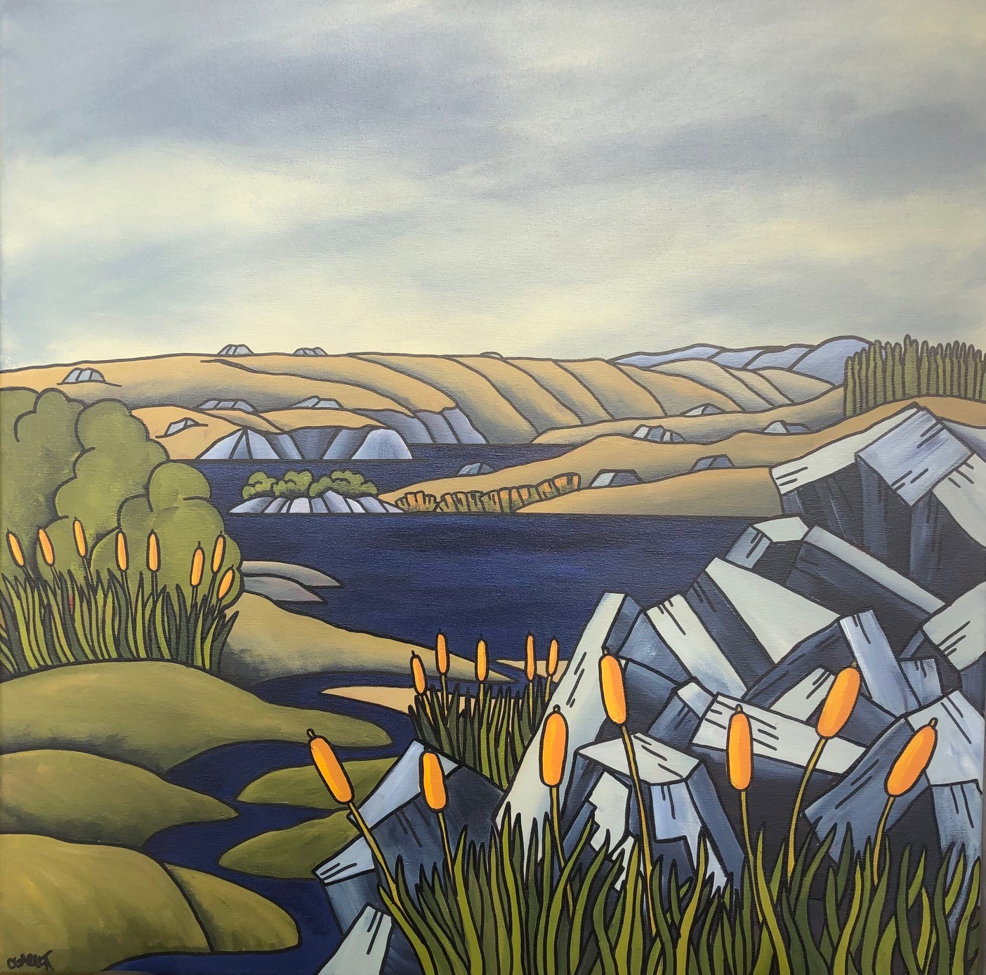 In her past works she simplifies the natural landscape into blocks of colour, but still manages to capture the essence of the place portrayed.